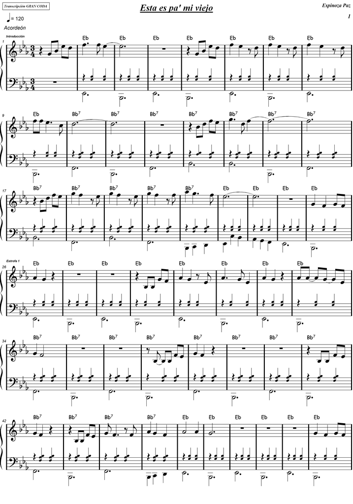- Partitura Acordeón con cifrado de acordes del tema Esta es pa’ mi viejo.